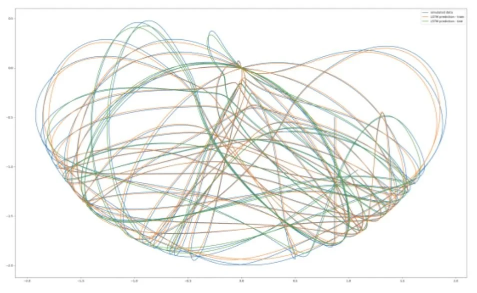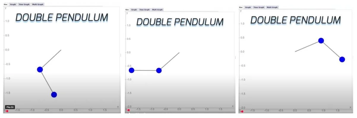 One of the simplest mathematical models that exhibits chaotic behaviour is the double pendulum. A double pendulum consists of one pendulum arm attached to another, with each arm having a mass at its end and a rod connecting them. This simple structure exhibits complex, chaotic motion, meaning its future behaviour is highly sensitive to minute changes in its starting position, leading to unpredictable but deterministic paths. This is known as sensitive dependence on initial conditions, and in fact, we can never measure initial conditions well enough to predict outcomes accurately beyond a certain time frame.